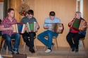 vlnr: Ruedi, Florian, Matthias und Daniel (vo de Roteflue ds Wiggen)Der junge und begeisterte Ländlermusikant Matthias Gerber aus Wiggen ist für die Organisation und Durchführung vom Ländler-Mix zuständig und berichtigt: "Eigentli tüe mer mitlerwile di ganz Familie Gerber de Ländlermix organisiere."