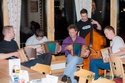 vlnr: Ruedi, Florian, Matthias und Daniel (vo de Roteflue ds Wiggen)Der junge und begeisterte Ländlermusikant Matthias Gerber aus Wiggen ist für die Organisation und Durchführung vom Ländler-Mix zuständig und berichtigt: "Eigentli tüe mer mitlerwile di ganz Familie Gerber de Ländlermix organisiere."