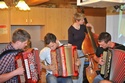 vlnr: Ruedi, Florian, Matthias und Daniel (vo de Roteflue ds Wiggen)Der junge und begeisterte Ländlermusikant Matthias Gerber aus Wiggen ist für die Organisation und Durchführung vom Ländler-Mix zuständig und berichtigt: "Eigentli tüe mer mitlerwile di ganz Familie Gerber de Ländlermix organisiere."